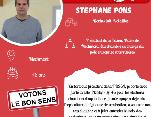 Élections Chambre d’agriculture : FDSEA/JA portrait de Stéphane PONS