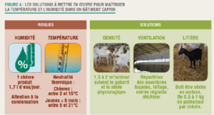 La majorité des chèvreries sont ventilées de façon statique, les équipements de ventilation dynamique arrivent peu à peu suivant l’évolution des températures en période estivale. Les périodes de grands froids sont de plus en plus courtes et peu intenses.