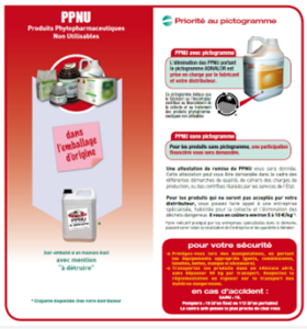 Il s’agit principalement des produits phytopharmaceutiques retirés du marché. Peuvent également être considérés comme PPNU les effluents de pulvérisation dans le cas où ils ne seraient pas gérés au champs ou traités.