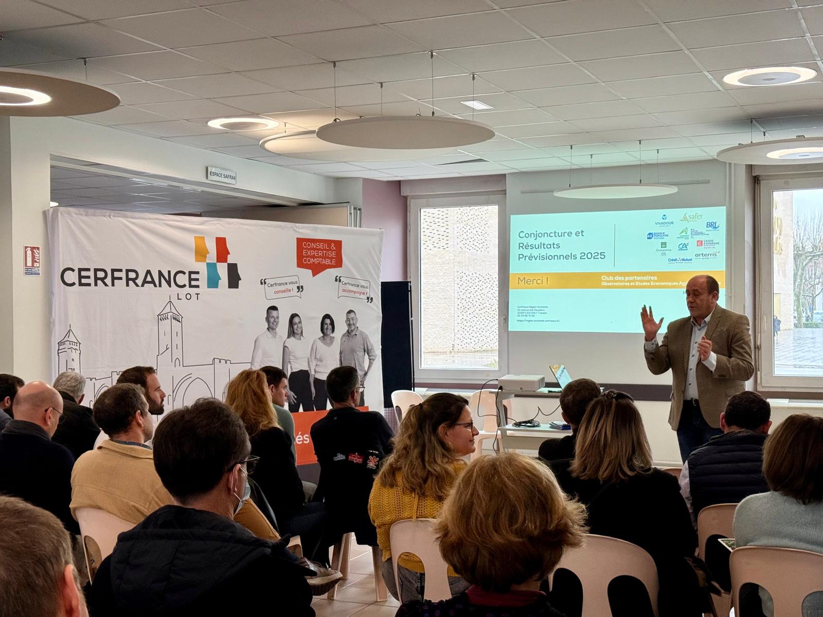 Lucie Canon et Damien Ameline, chargés d’études à CERFRANCE Lot, ont d’abord rappelé la conjoncture de 2025 :