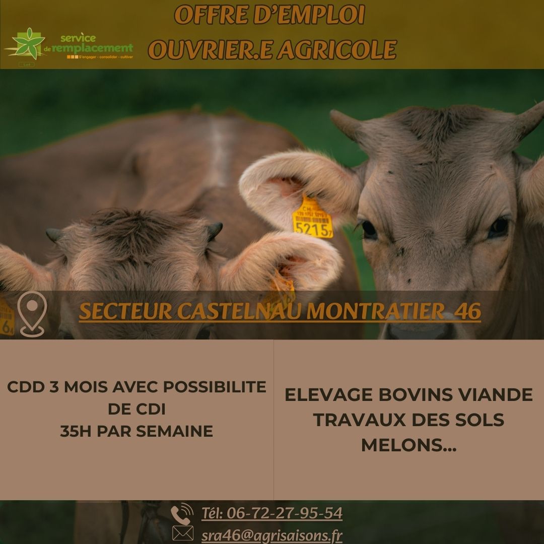 Actualité février 17, 2026 Aucun Commentaire 0 Offre d’emploi ouvrier agricole Secteur Castelnau-Montratier