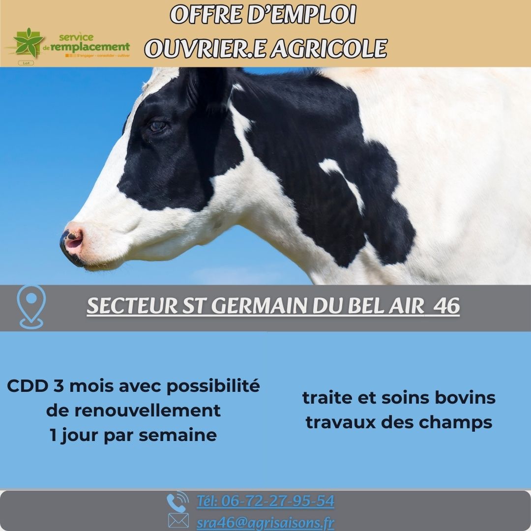 Offre d’emploi ouvrier agricole Secteur Lacapelle-Marival